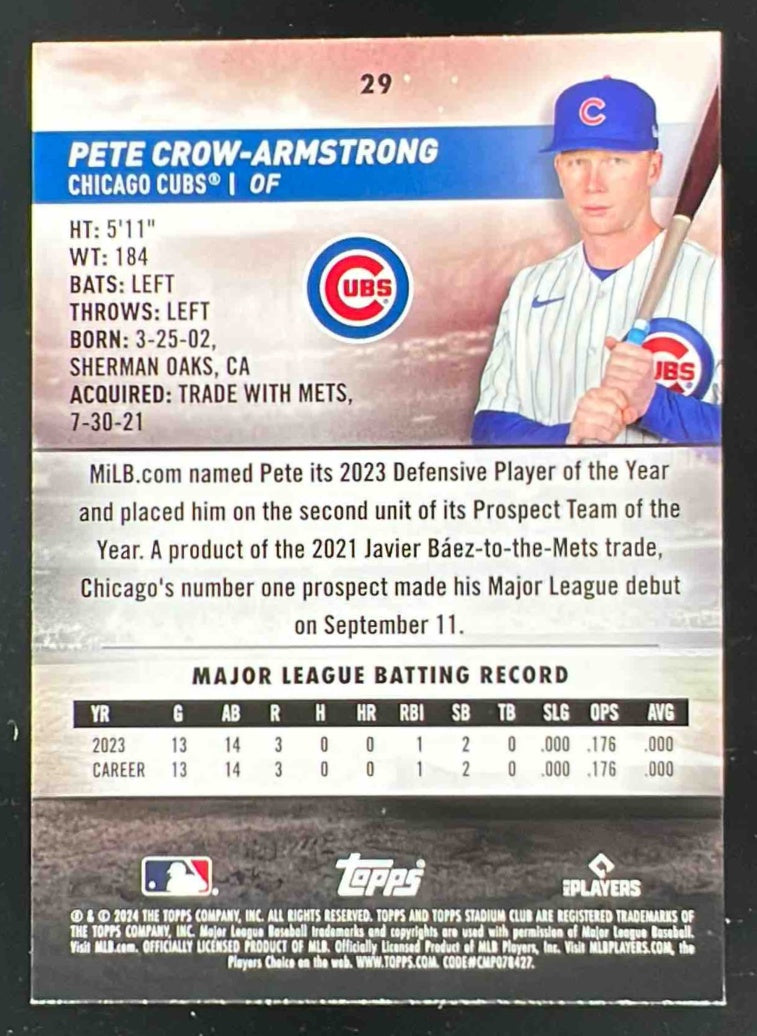 2024 Topps Stadium Club Gold Foil #29 Pete Crow-Armstrong RC