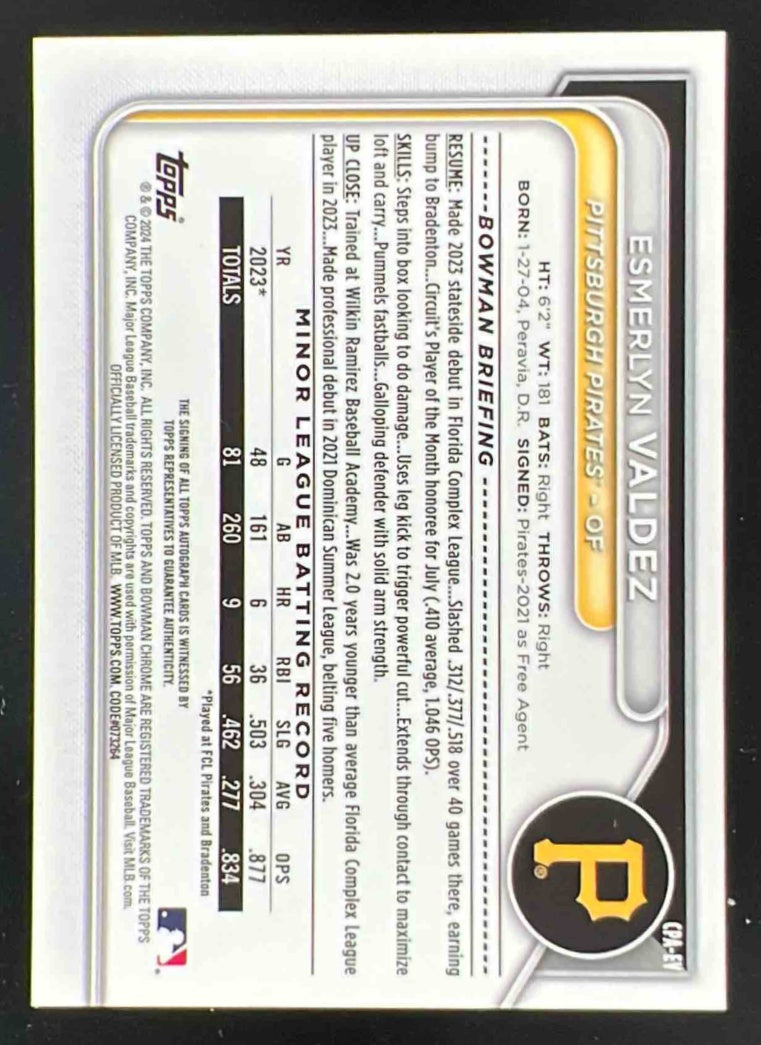 2024 Bowman Chrome Autographs #CPA-EV Esmerlyn Valdez RC Auto