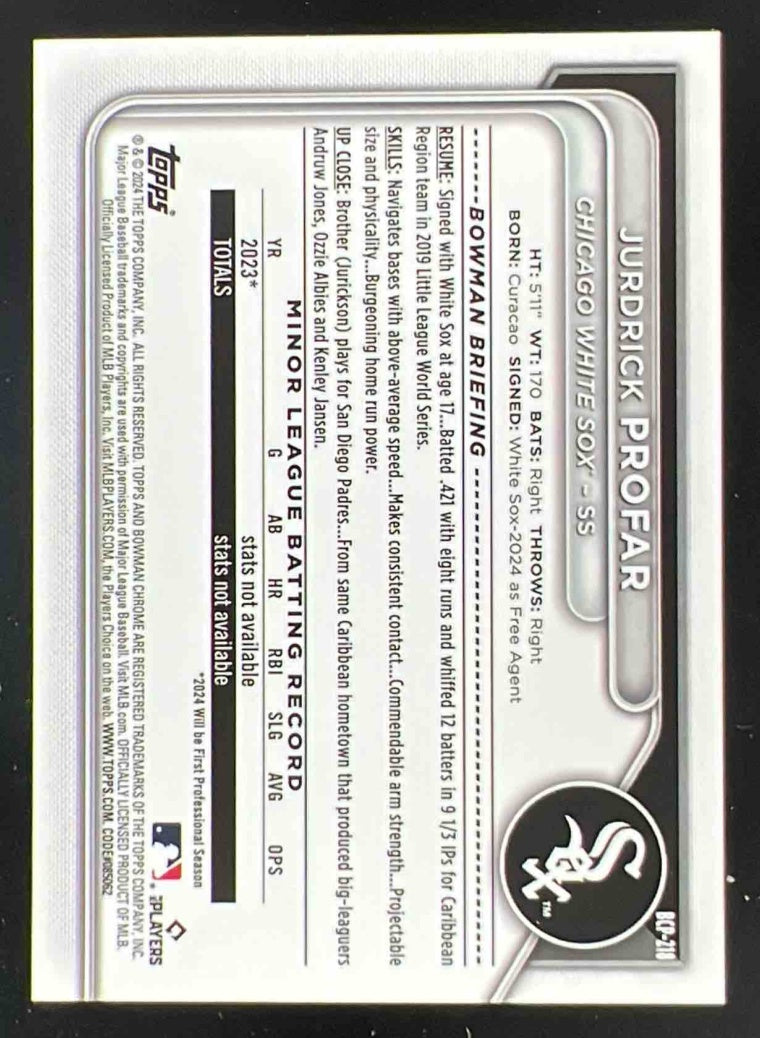 2024 Bowman Chrome Black Shimmer Refractor #BCP-218 Jurdrick Profar RC /10
