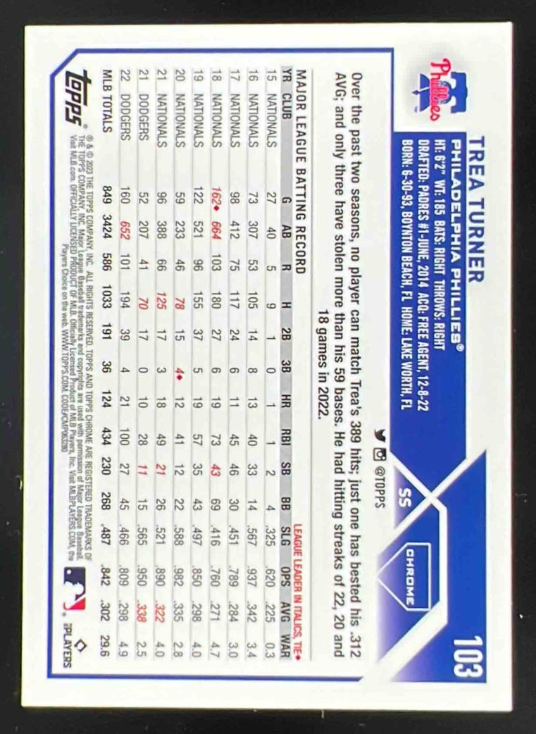 2023 Topps Chrome Logofractor Orange Refractor #103 Trea Turner /25