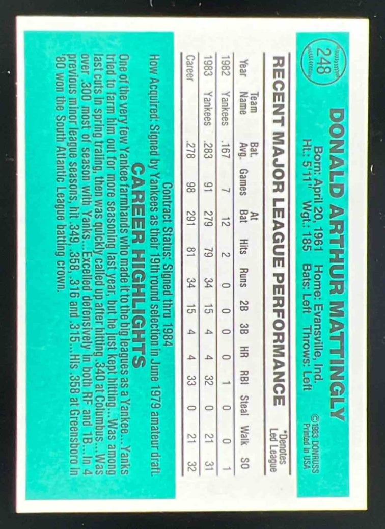 1984 Donruss #248 Don Mattingly RC