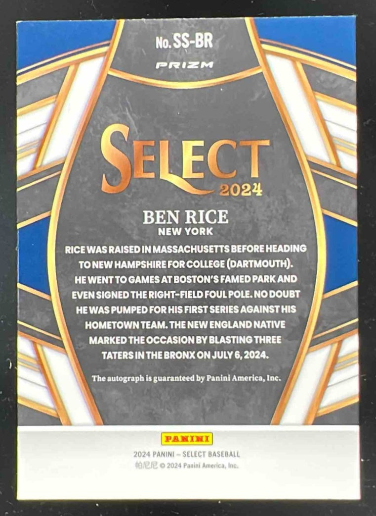 2024 Panini Select Signature Selections #SS-BR Ben Rice Autograph RC Auto