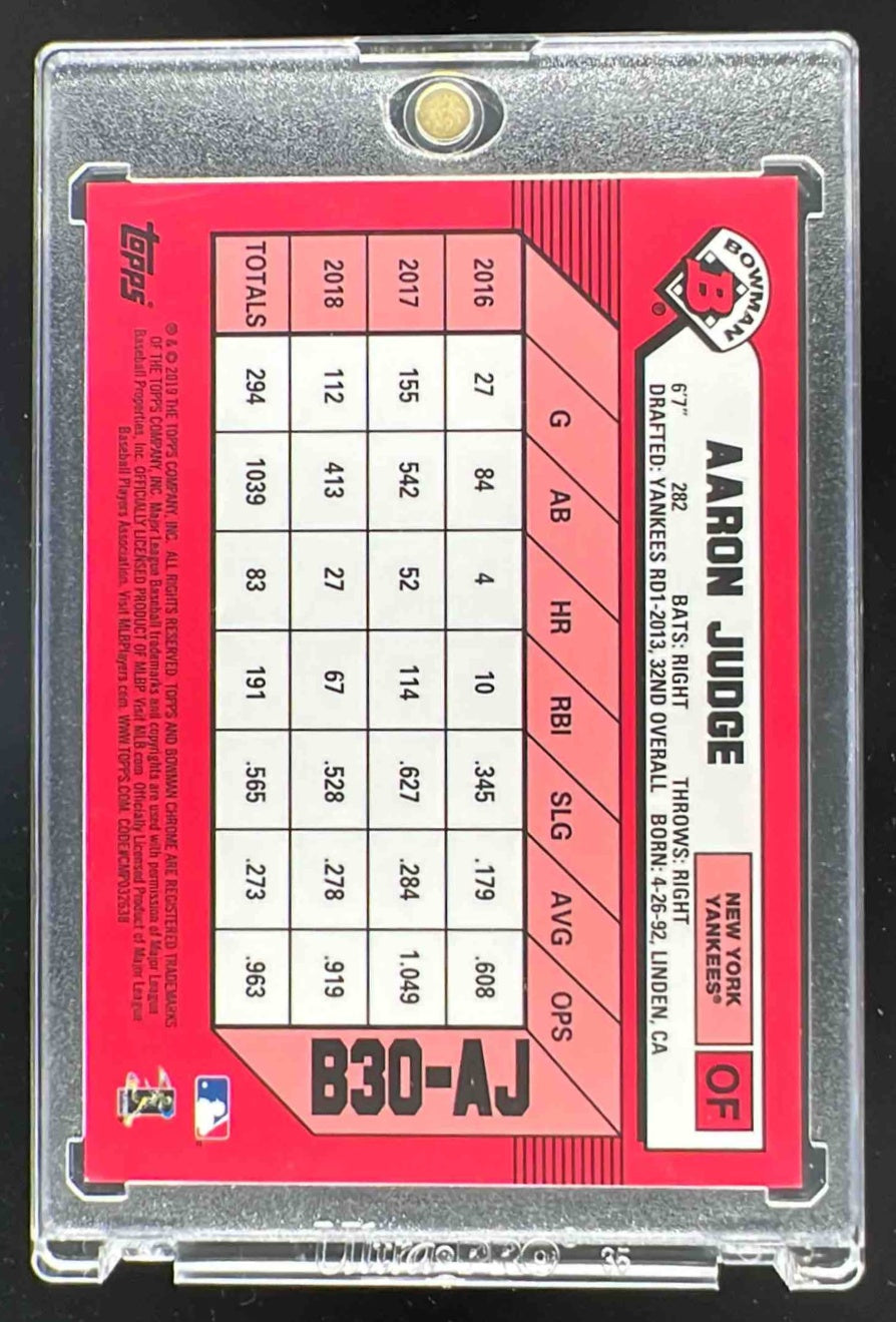 2019 Bowman 30th Anniversary Bowman Gold Refractors #B30-AJ Aaron Judge /50