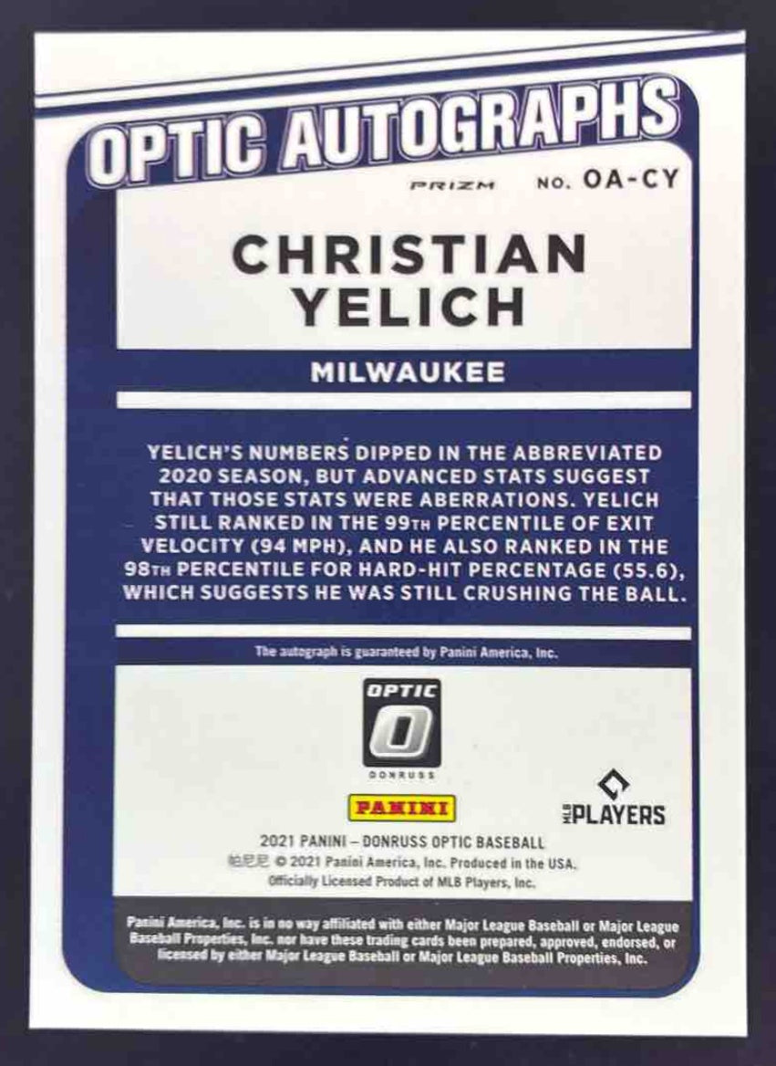 2021 Panini Donruss Optic Autographs Holo #OA-CY Christian Yelich Autograph Auto