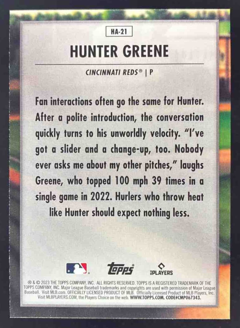 2023 Topps Update Home Field Advantage #HA-21 Hunter Greene
