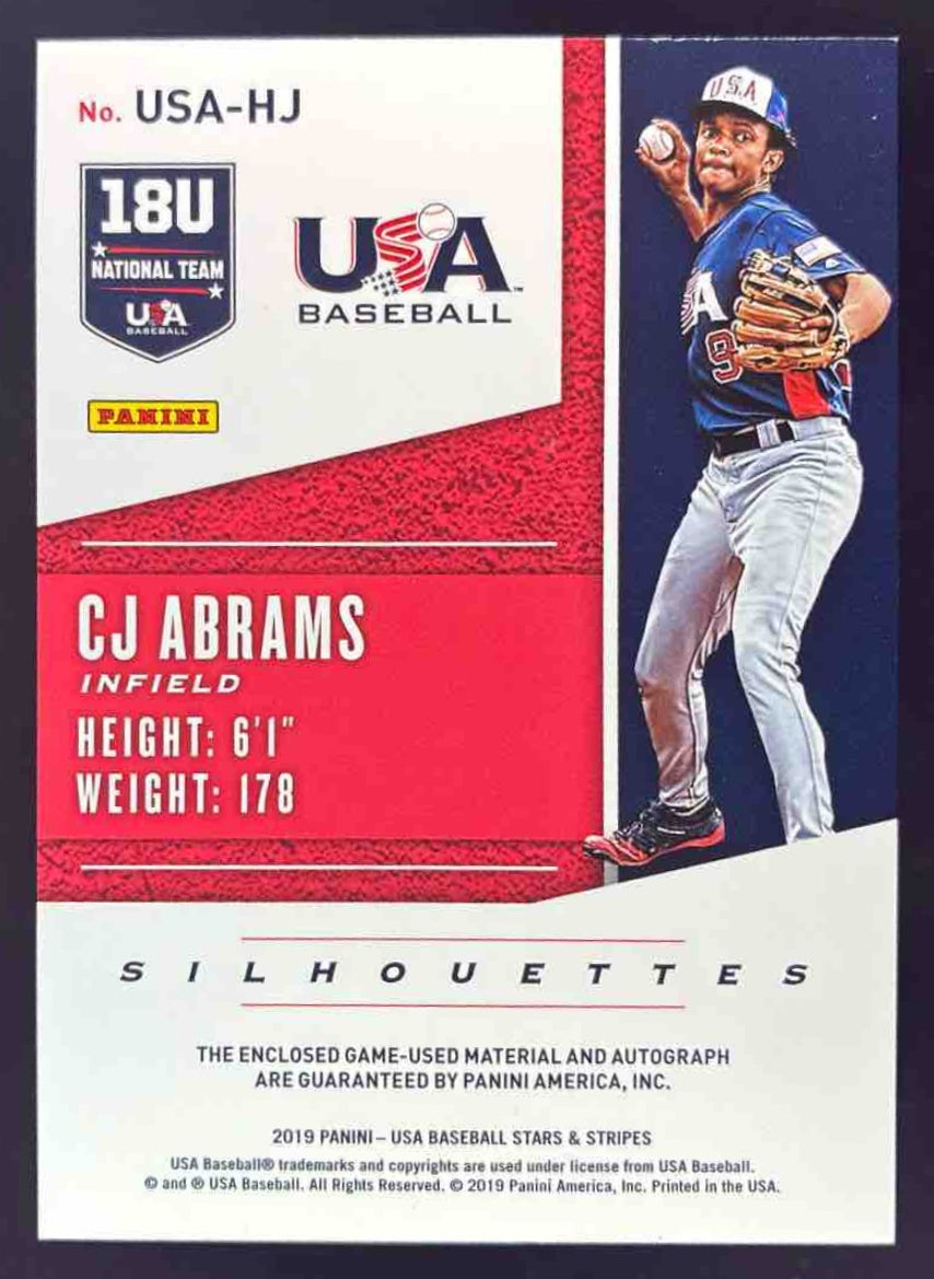 2019 USA Baseball Stars & Stripes USA BB Silhouettes Jerseys CJ Abrams Auto /199