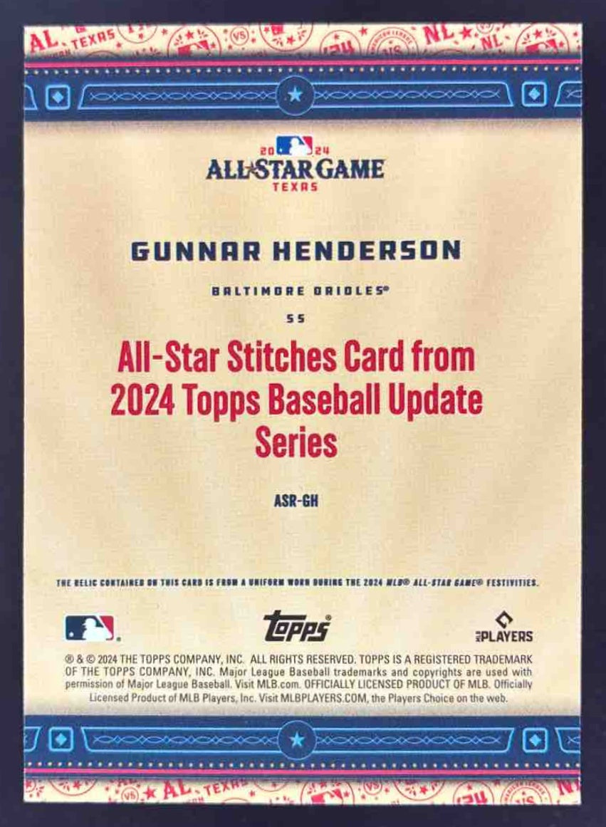 2024 Topps Update All Star Stitches Relics Gold #ASR-GH Gunnar Henderson /50