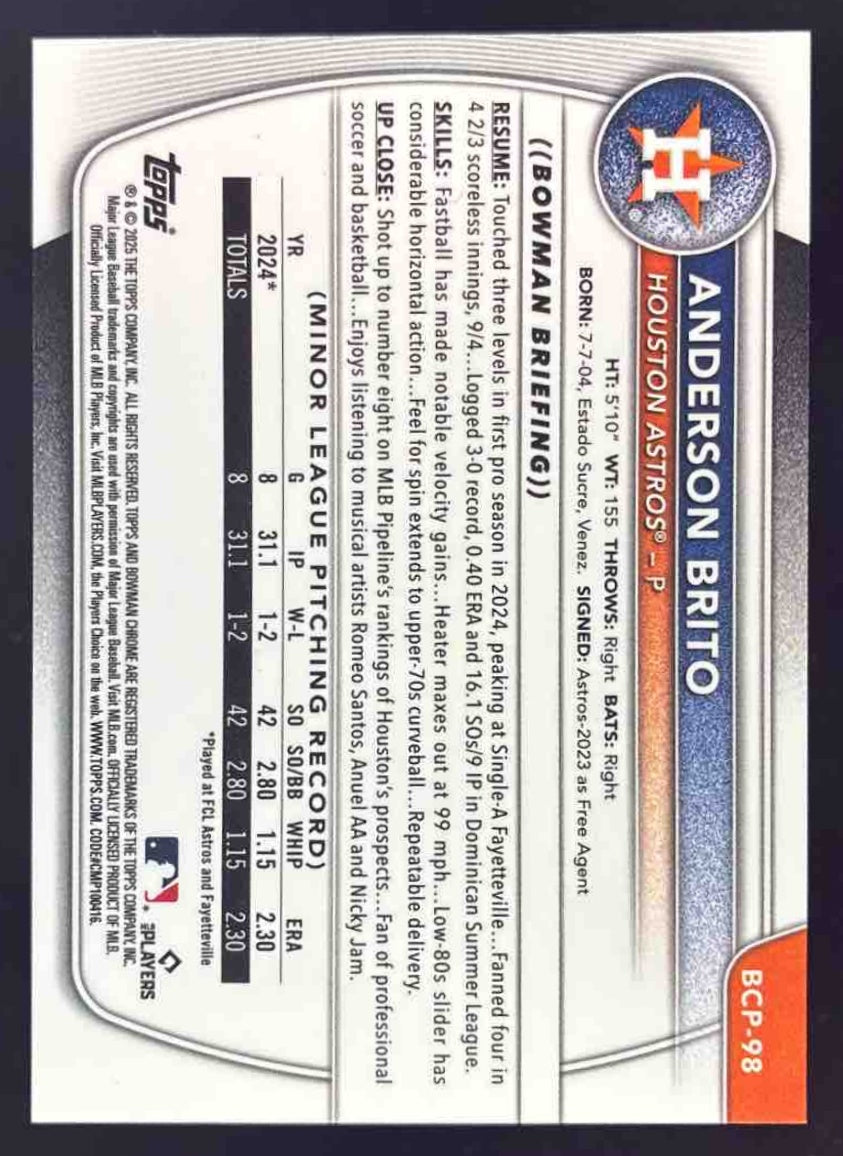 2025 Bowman Chrome Prospects Rose Gold Refractor #BCP-98 Anderson Brito RC /15