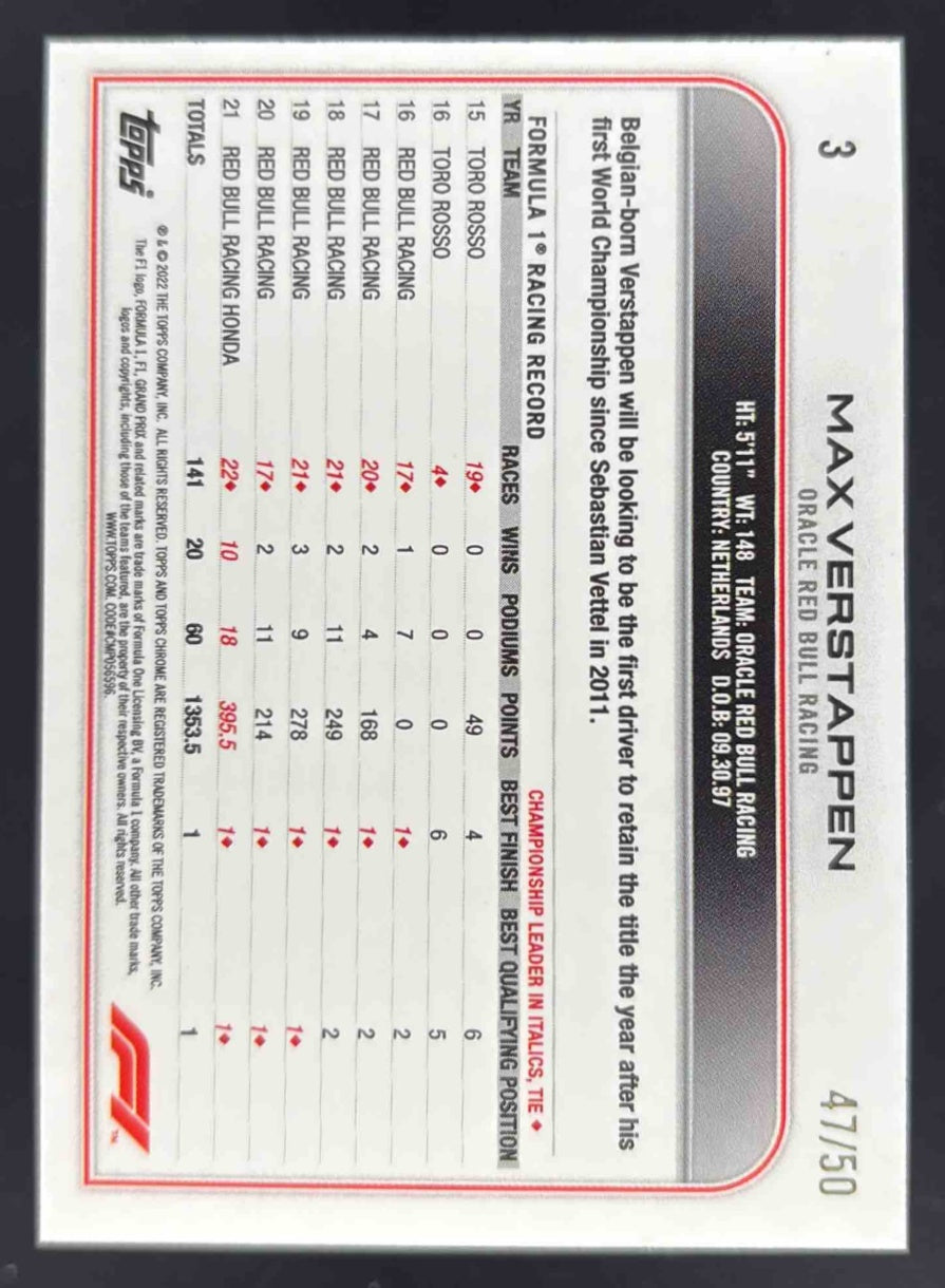 2022 Topps Chrome Formula 1 Gold Refractor #3 Max Verstappen /50