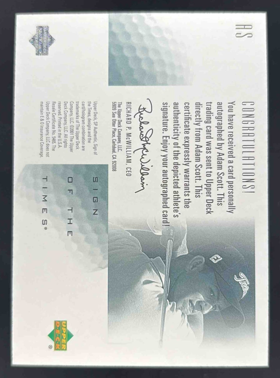 2001 SP Authentic Sign of the Times #AS Adam Scott Auto