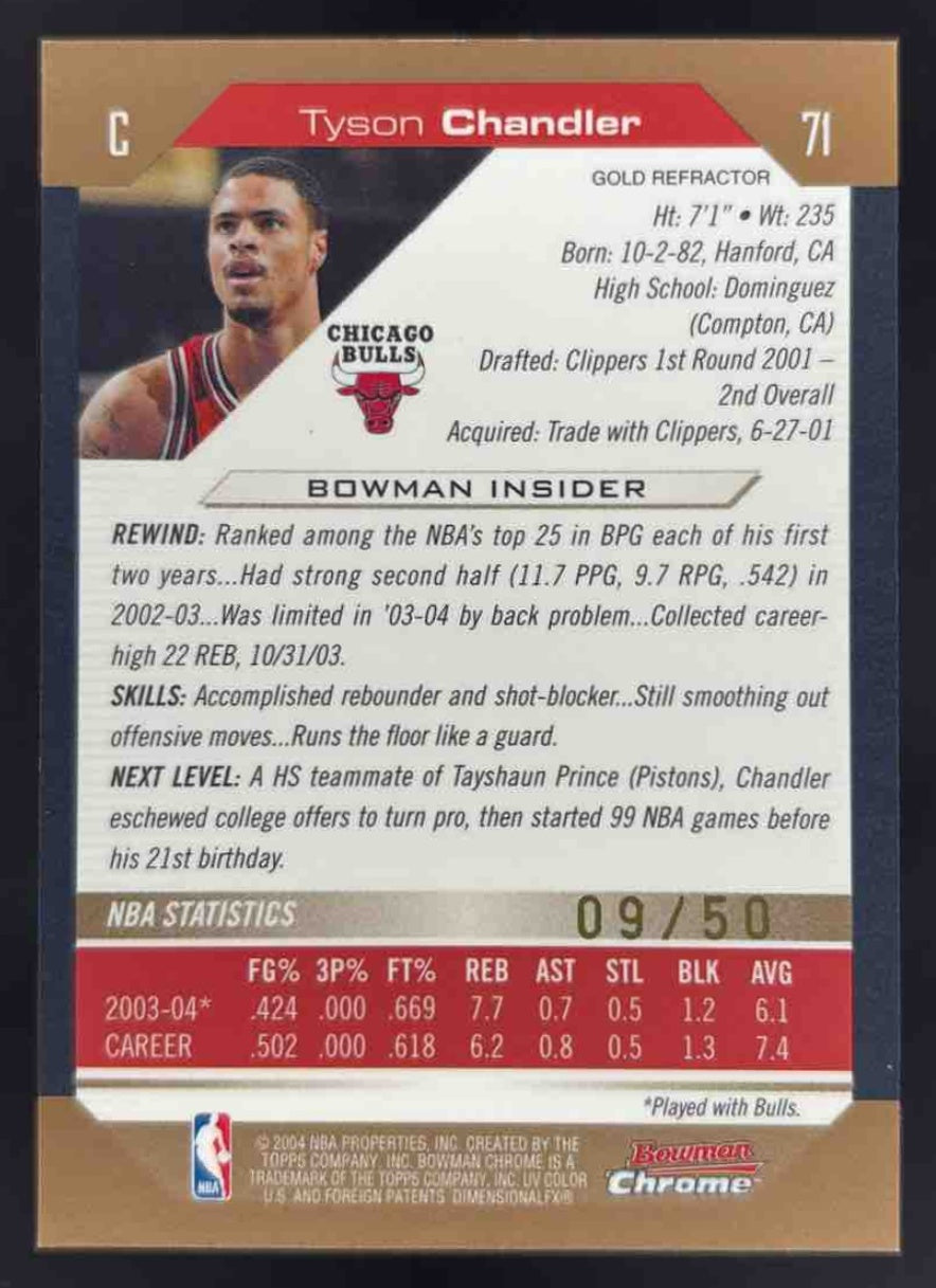 2004-05 Bowman Chrome Refractors Gold #71 Tyson Chandler /50
