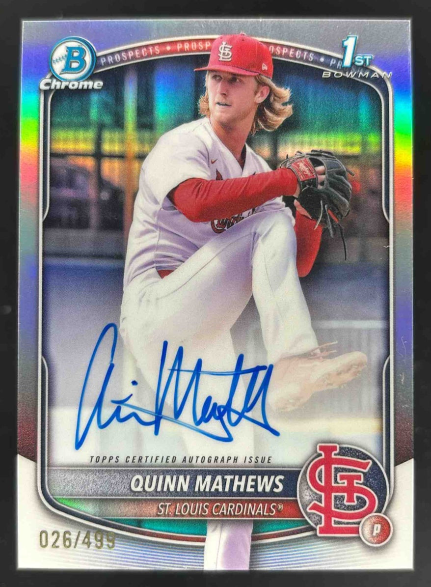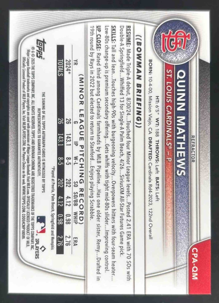 2025 Bowman Chrome Autographs Refractor #CPA-QM Quinn Mathews RC Auto /499