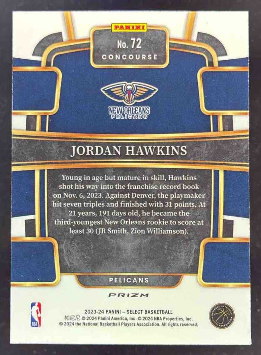 2023-24 Panini Select Elephant Prizm SSP #72 Jordan Hawkins RC Concourse
