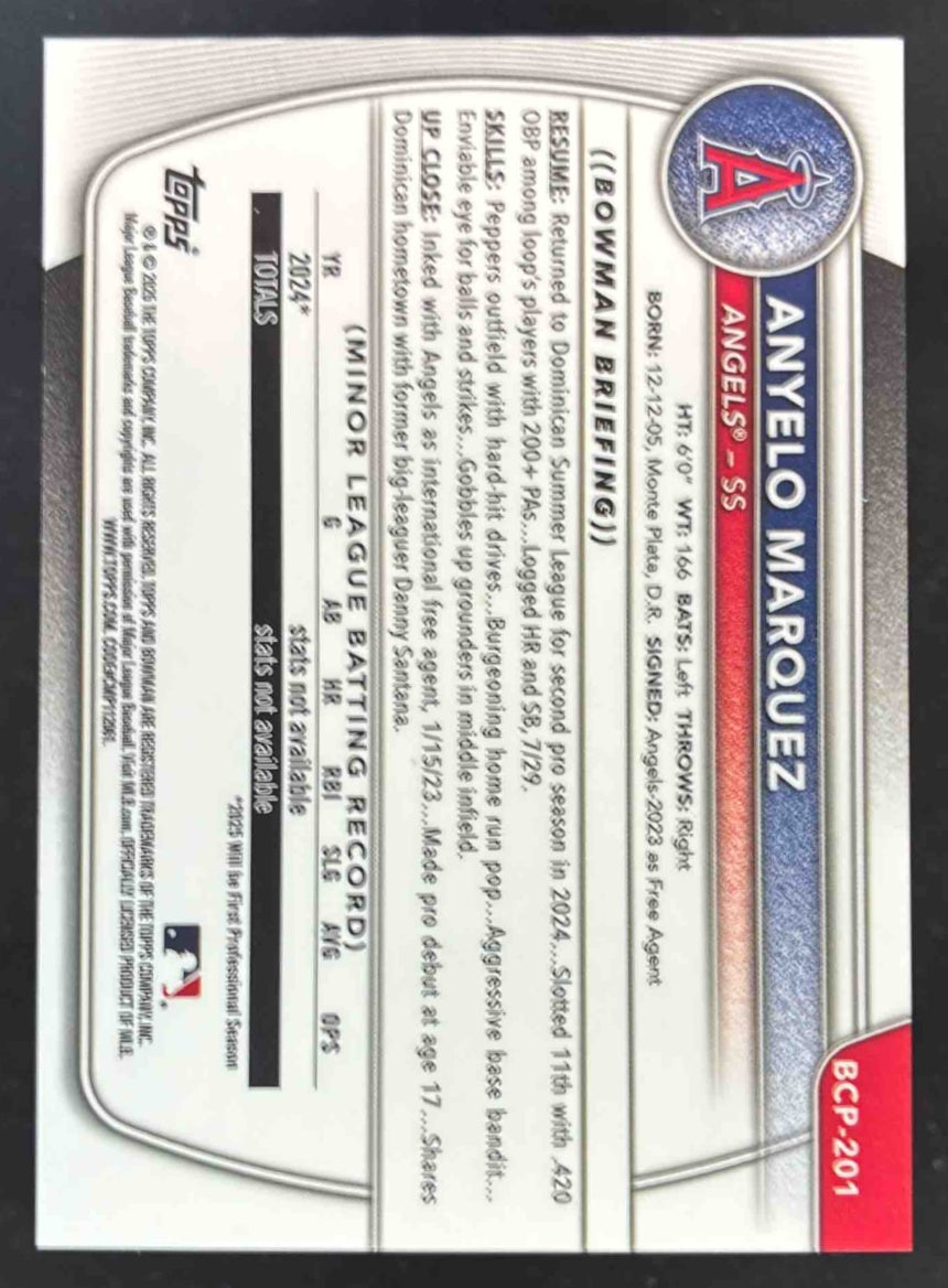 2025 Bowman Chrome Prospects Gold Wave Refractor #BCP-201 Anyelo Marquez RC /50