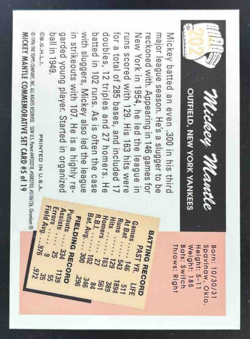 1996 Topps Mickey Mantle Commemorative Reprint Finest Refractor #5 Mickey Mantle