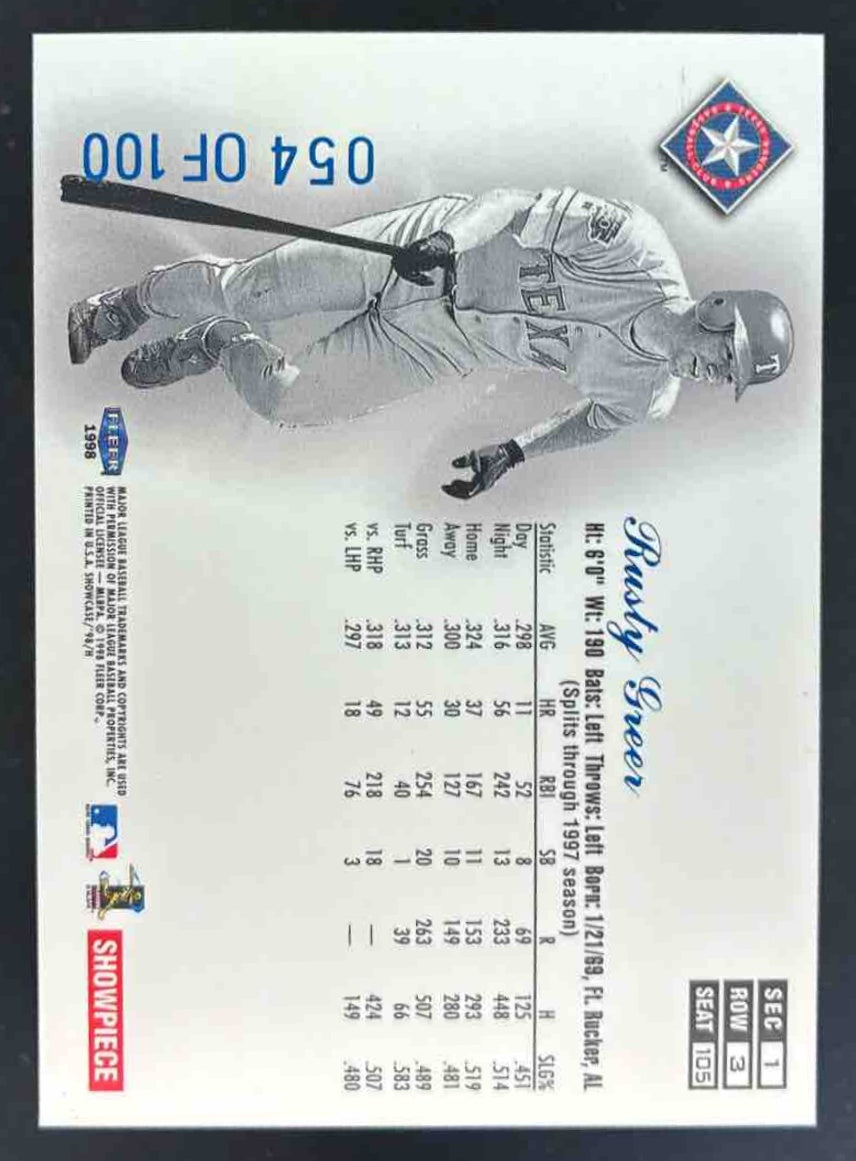 1998 Fleer Flair Showcase Legacy Collection Row 3 #105 Rusty Greer /100