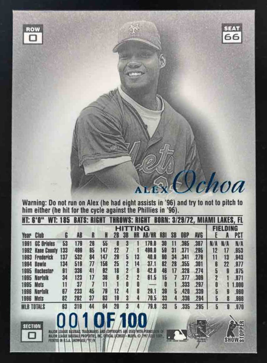 1997 Fleer Flair Showcase Legacy Collection Row 0 #66 Alex Ochoa /100