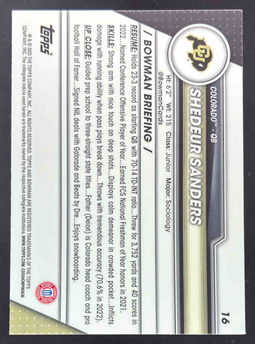 2023 Bowman University Chrome X Fractor #16 Shedeur Sanders