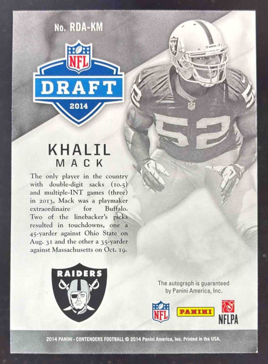2014 Panini Contenders Draft Class Autographs #RDA-KM Khalil Mack RC Auto