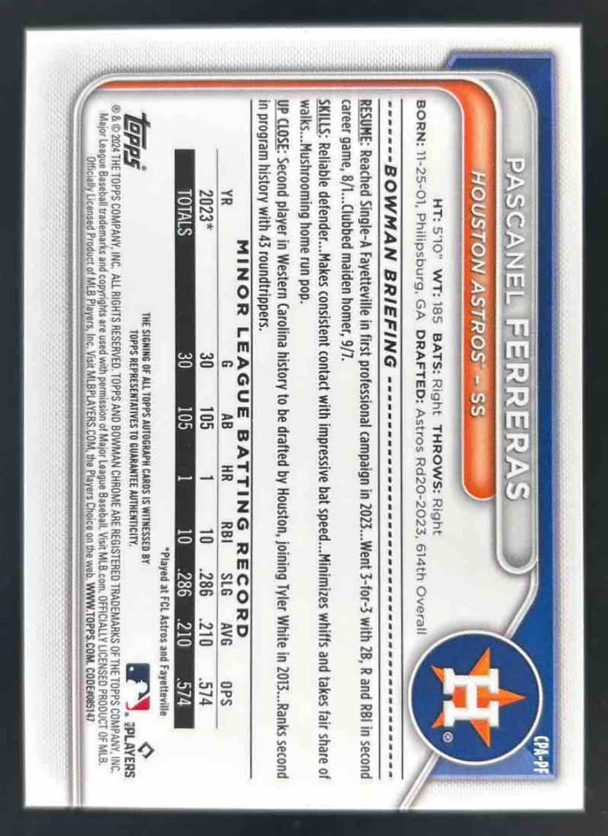 2024 Bowman Chrome Orange Lava Refractor #CPA-PF Pascanel Ferreras RC Auto /25