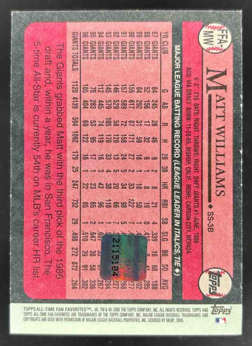 2005 Topps All-Time Fan Favorites Autographs #FFA-MW Matt Williams Auto