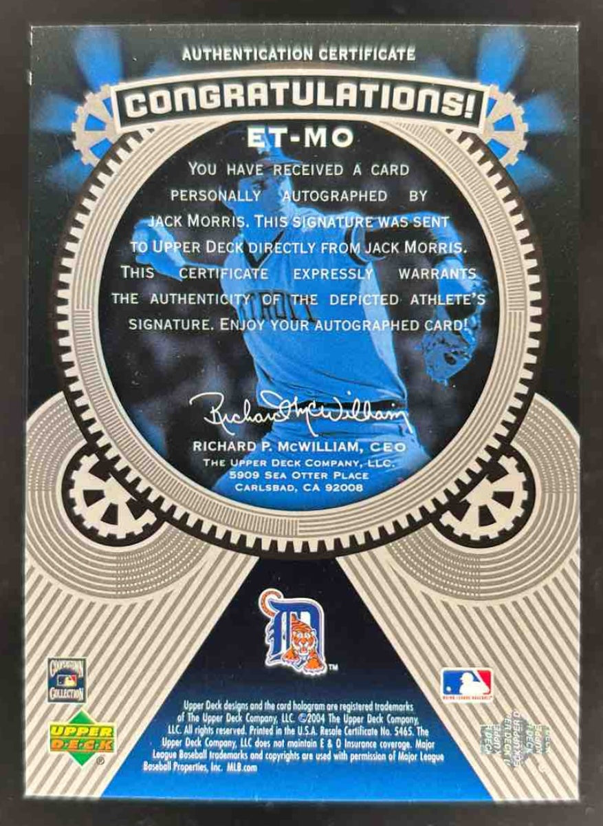 2004 Upper Deck Etchings Etched in Time Blue #ET-MO Jack Morris Auto /250