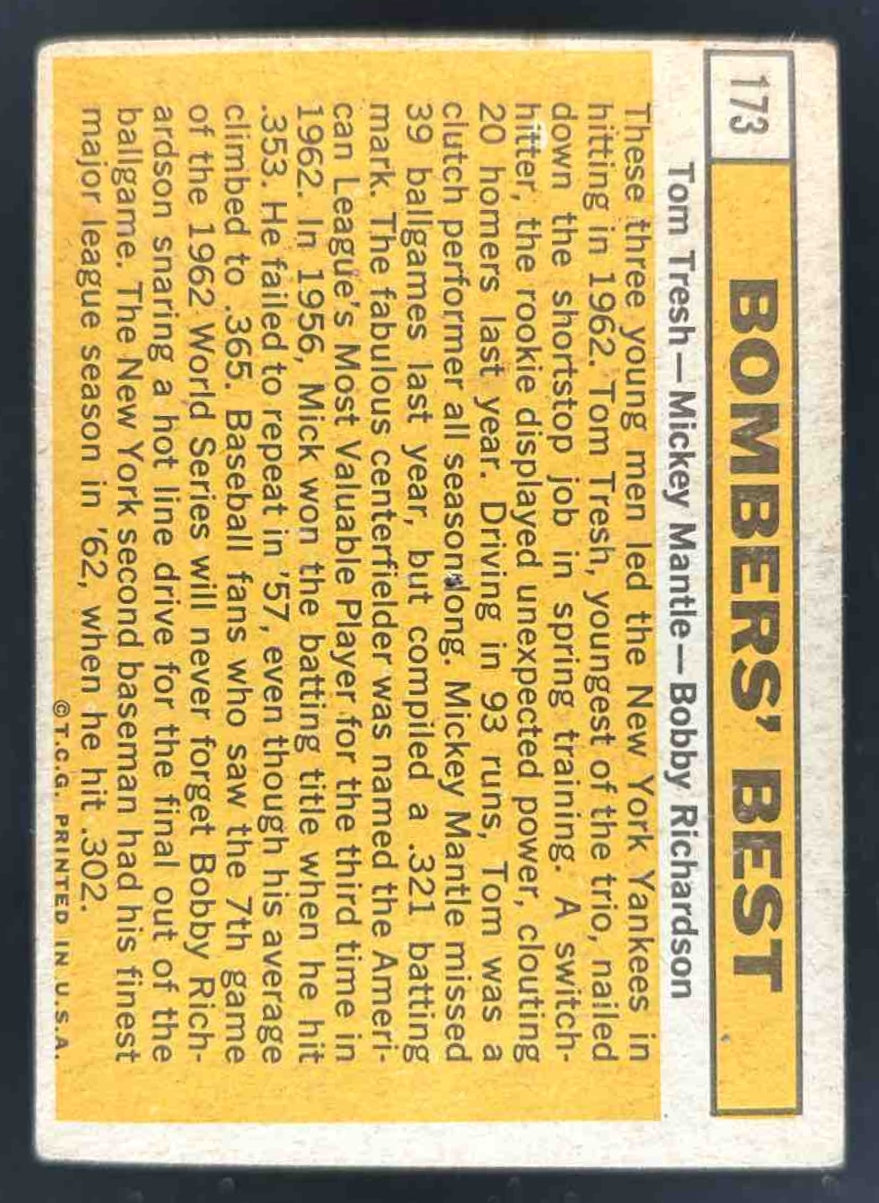1963 Topps #173a Bomber's Best (Mickey Mantle Bobby Richardson Tom Tresh)