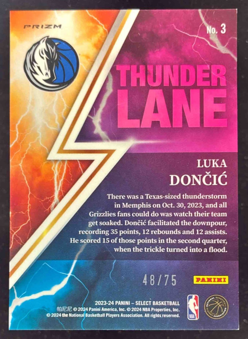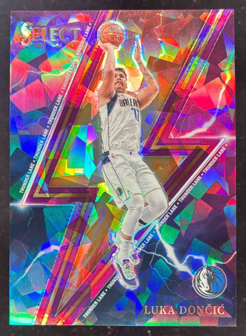 2023-24 Panini Select Thunder Lane Purple Cracked Ice Prizms #3 Luka Doncic /75