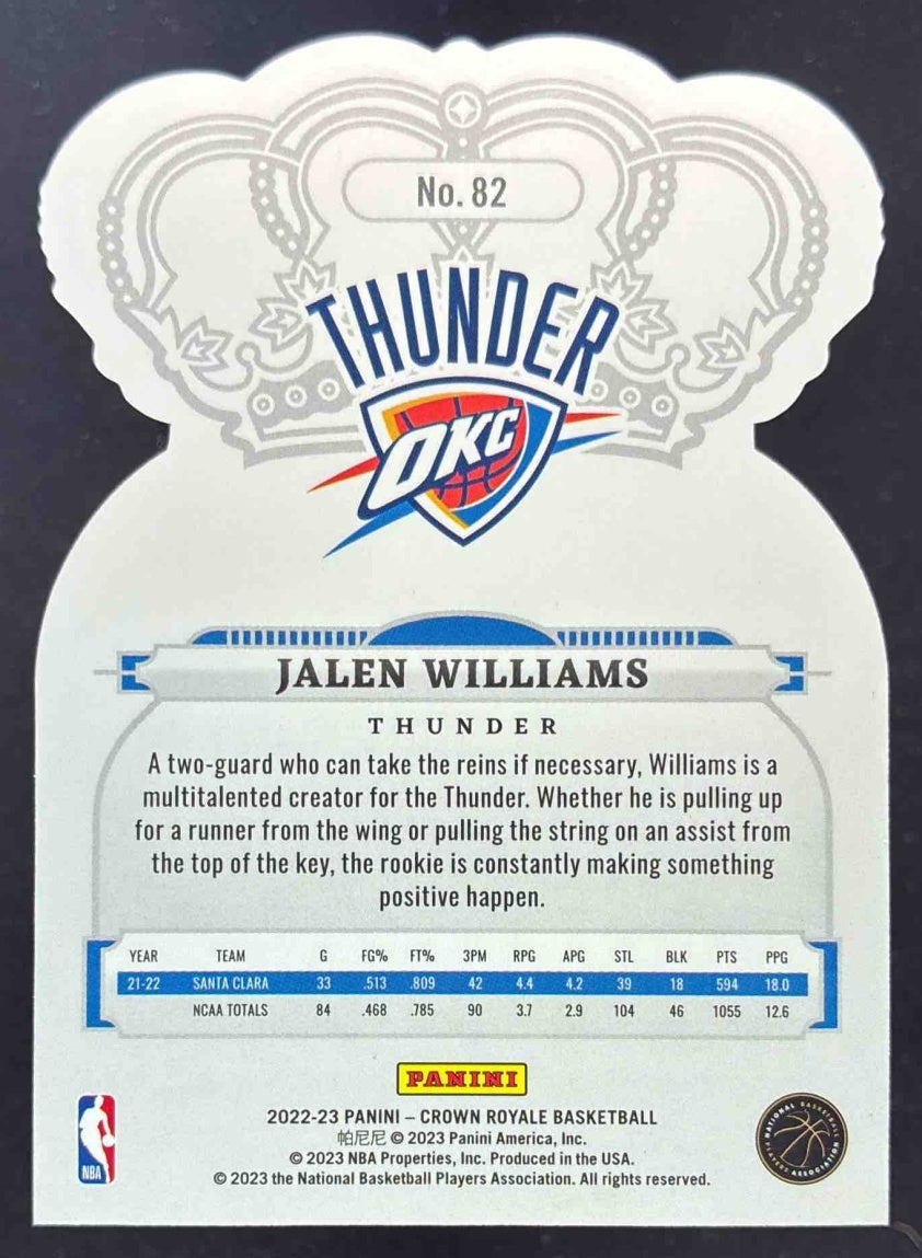 2022-23 Panini Crown Royale Crystal Gold #82 Jalen Williams RC /10