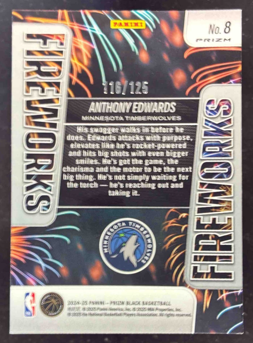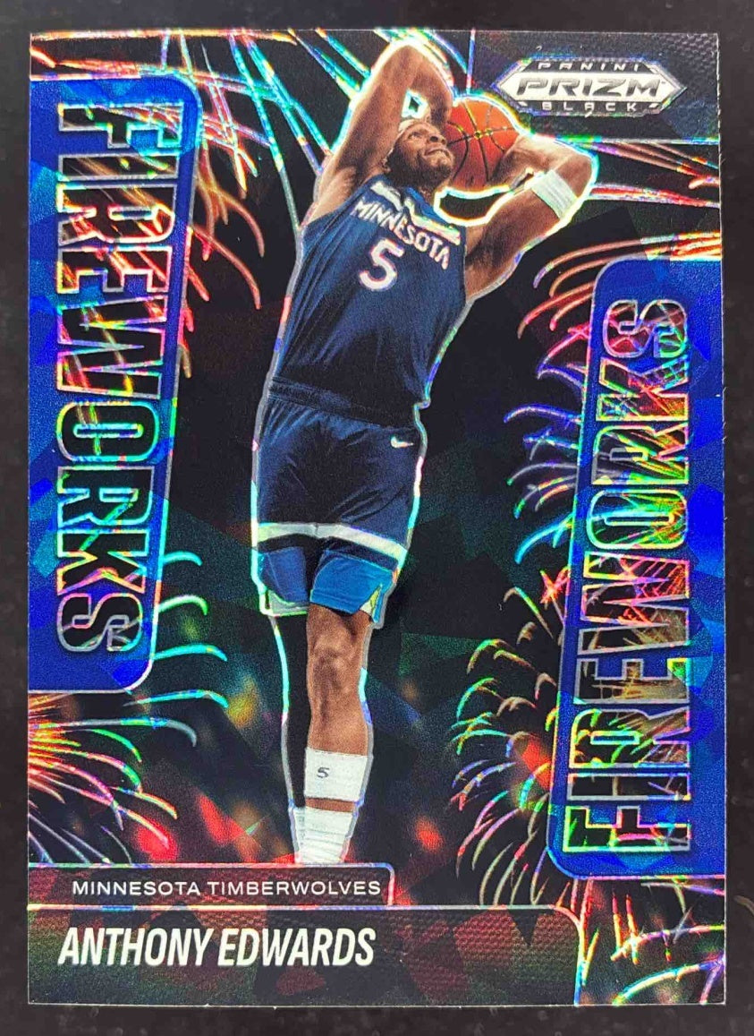 2024-25 Panini Prizm Black Fireworks Blue Ice Prizms #8 Anthony Edwards /125