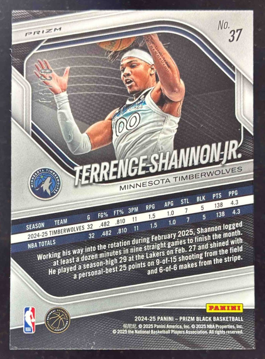 2024-25 Panini Prizm Black Orange Prizms #37 Terrence Shannon Jr. RC /49