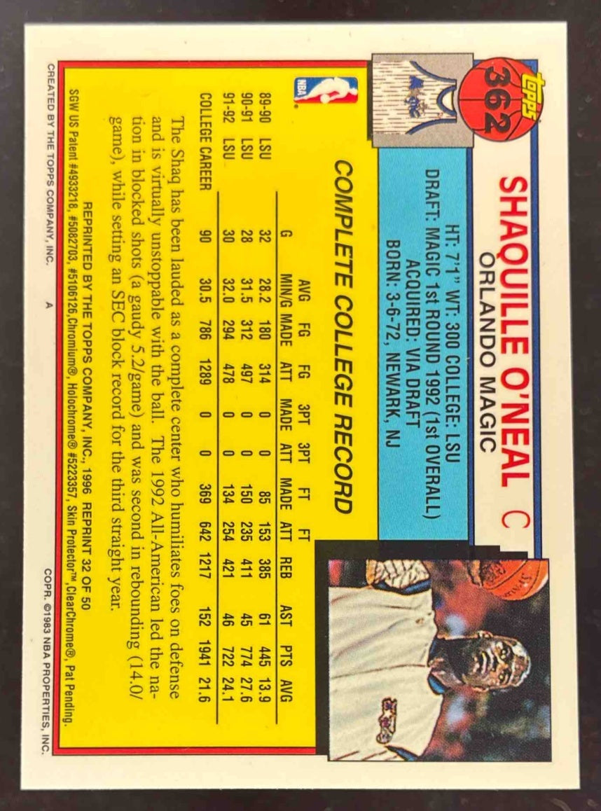1996-97 Topps Finest Reprints #32 Shaquille O'Neal