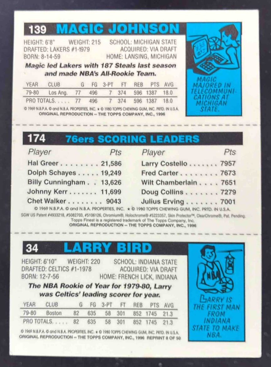 1996-97 Topps Finest Reprints #22 Larry Bird Julius Erving Magic Johnson