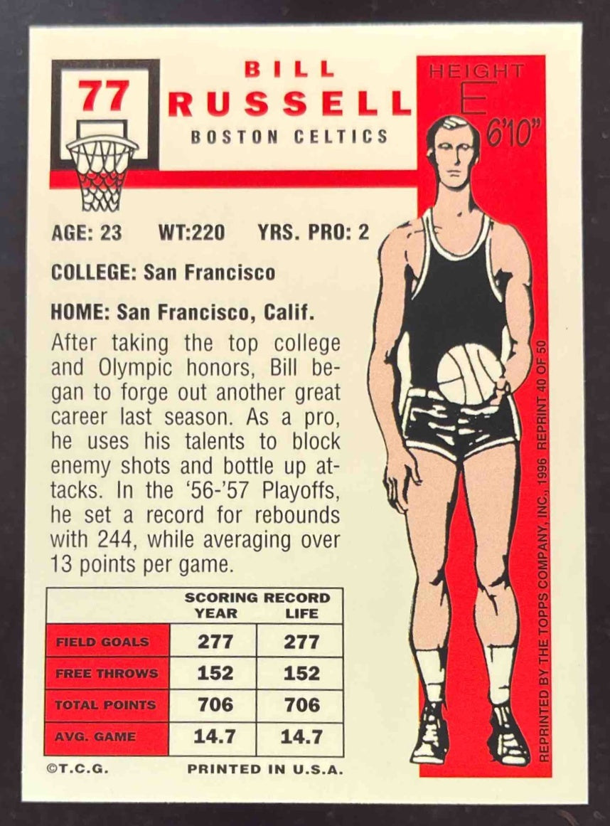 1996-97 Topps Stars Reprints #40 Bill Russell