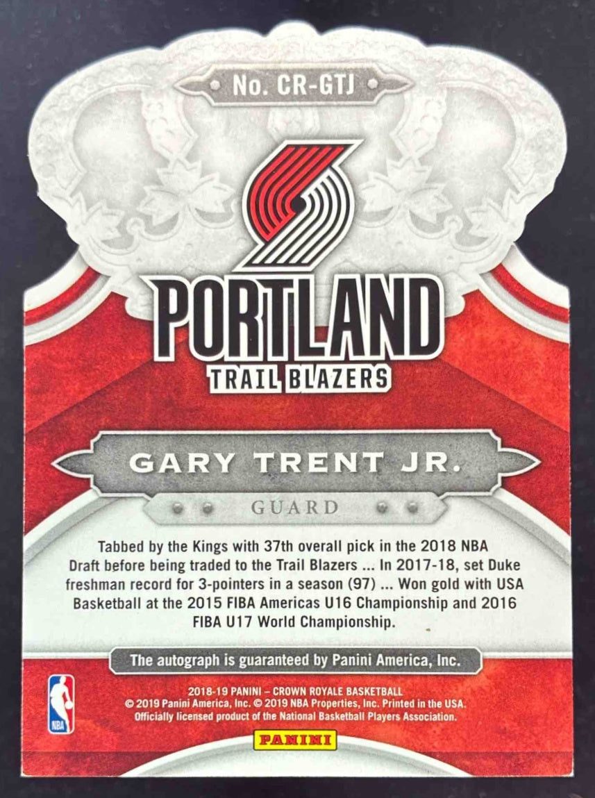 2018-19 Crown Royale Crown Rookies Gold #CR-GTJ Gary Trent Jr. RC Auto /10
