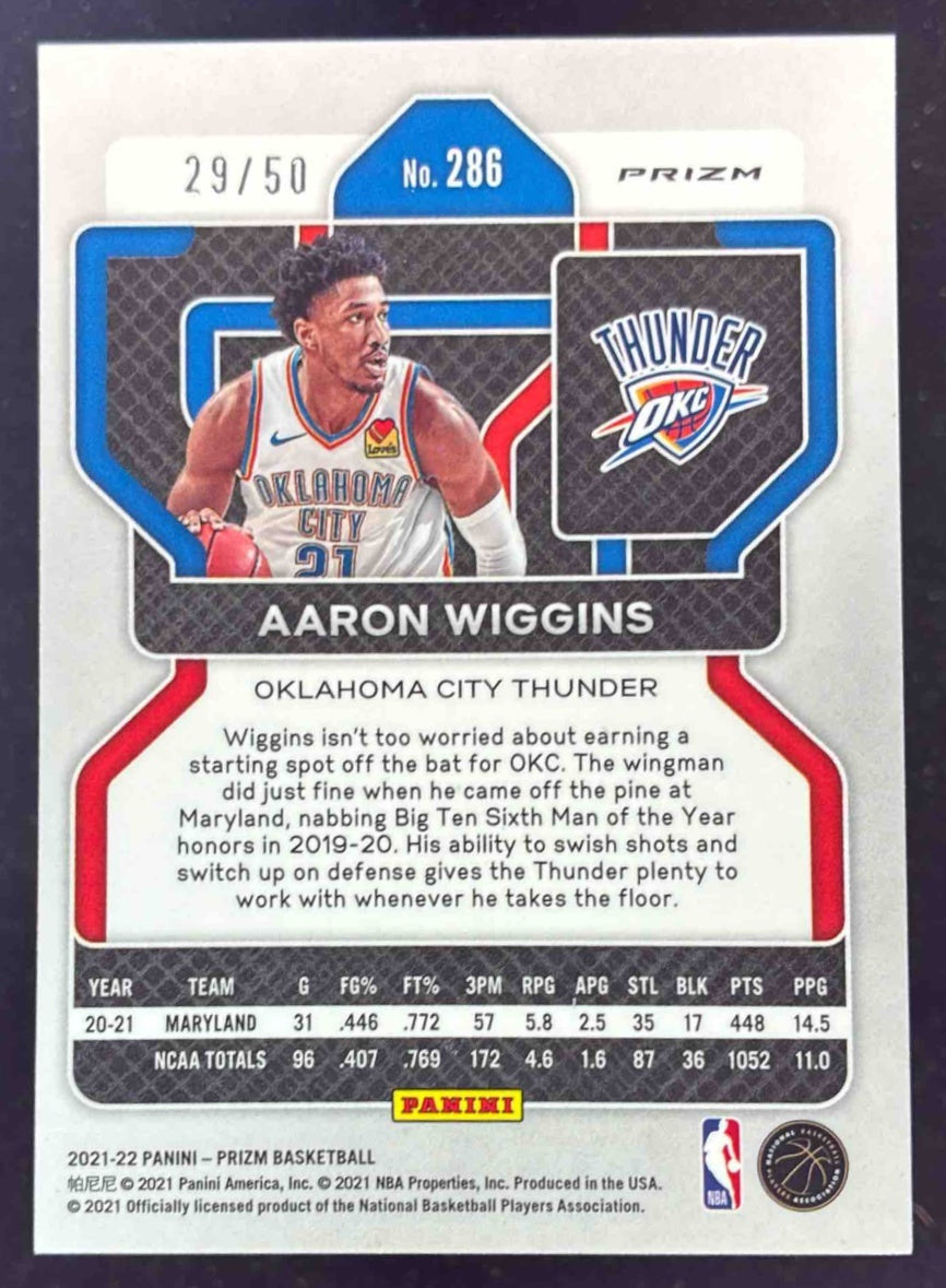 2021-22 Panini Prizm Fast Break Pink #286 Aaron Wiggins RC /50