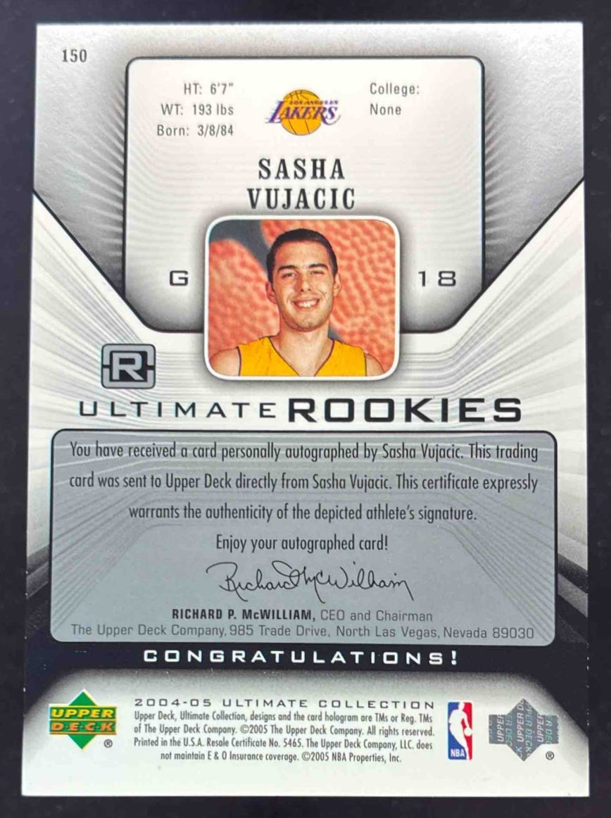 2004-05 Upper Deck Ultimate Collection #150 Sasha Vujacic RC Auto /250
