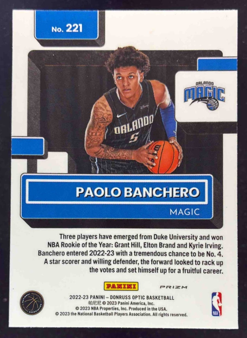 2022-23 Panini Donruss Optic Holo #221 Paolo Banchero RC Rated Rookie