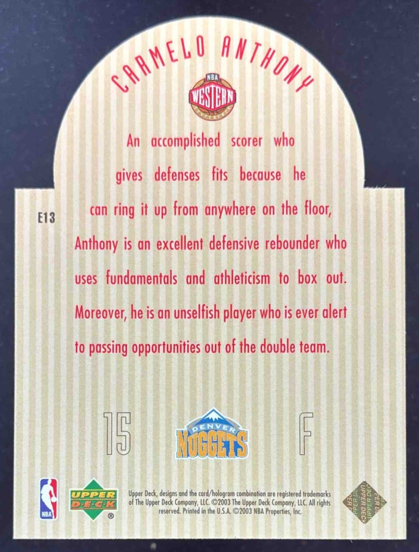 2003-04 Upper Deck Future NBA All Stars #E13 Carmelo Anthony RC