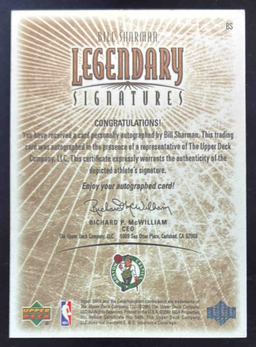 2000-01 Upper Deck Legends Legendary Signatures #BS Bill Sharman Auto