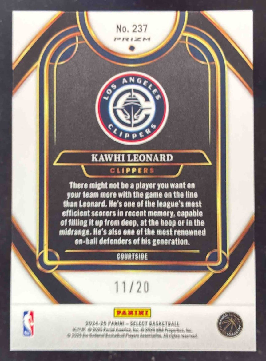 2024-25 Panini Select Courtside Blue Stars Prizm #237 Kawhi Leonard /20
