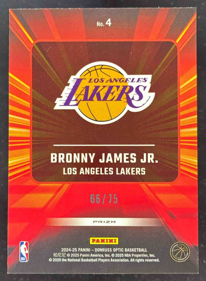 2024-25 Panini Donruss Optic Express Lane Red Shimmer #4 Bronny James Jr. RC /75