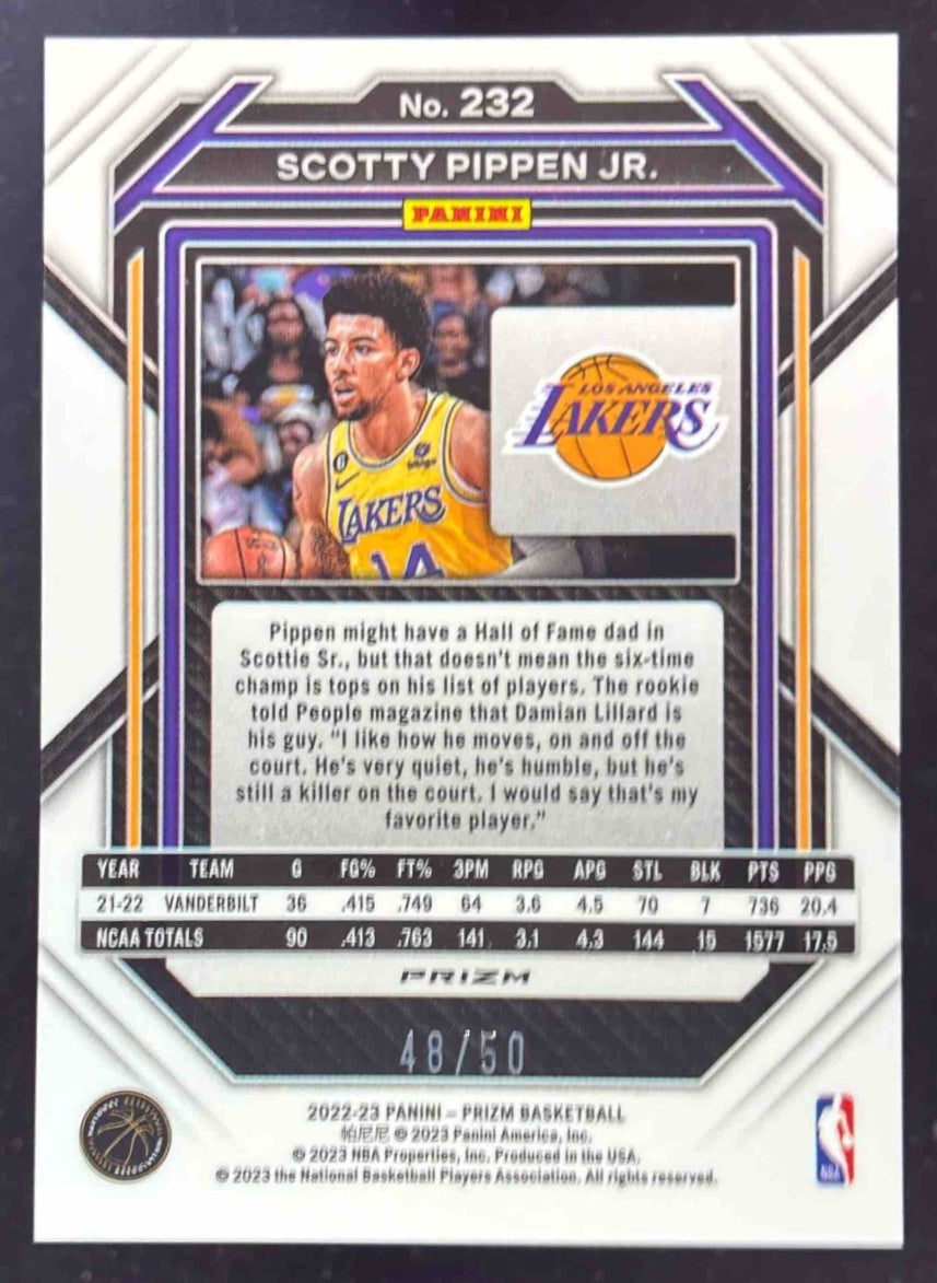 2022-23 Panini Prizm Prizms Fast Break Pink #232 Scotty Pippen Jr. RC /50