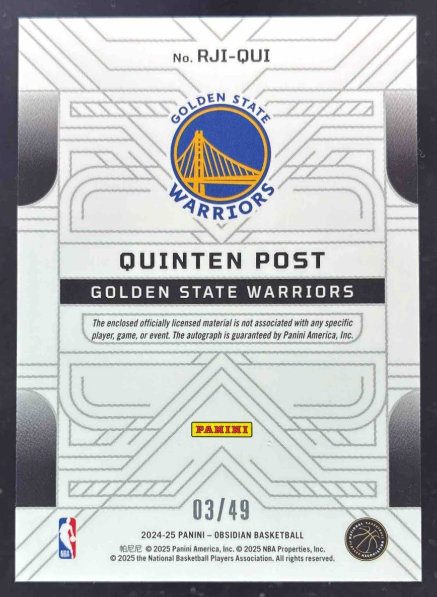 2024 Obsidian Rookie Jersey Ink Electric Etch Pink Flood Quinten Post Auto /49