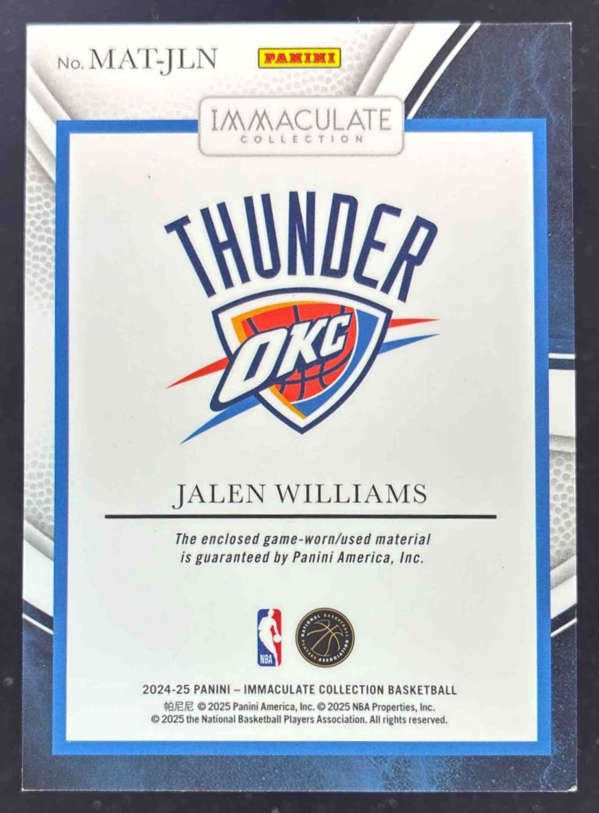 2024-25 Panini Immaculate Collection Materials #MAT-JLN Jalen Williams /99