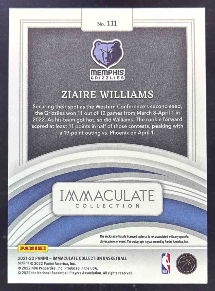 2021-22 Panini Immaculate Collection #111 Ziaire Williams RC Auto /99