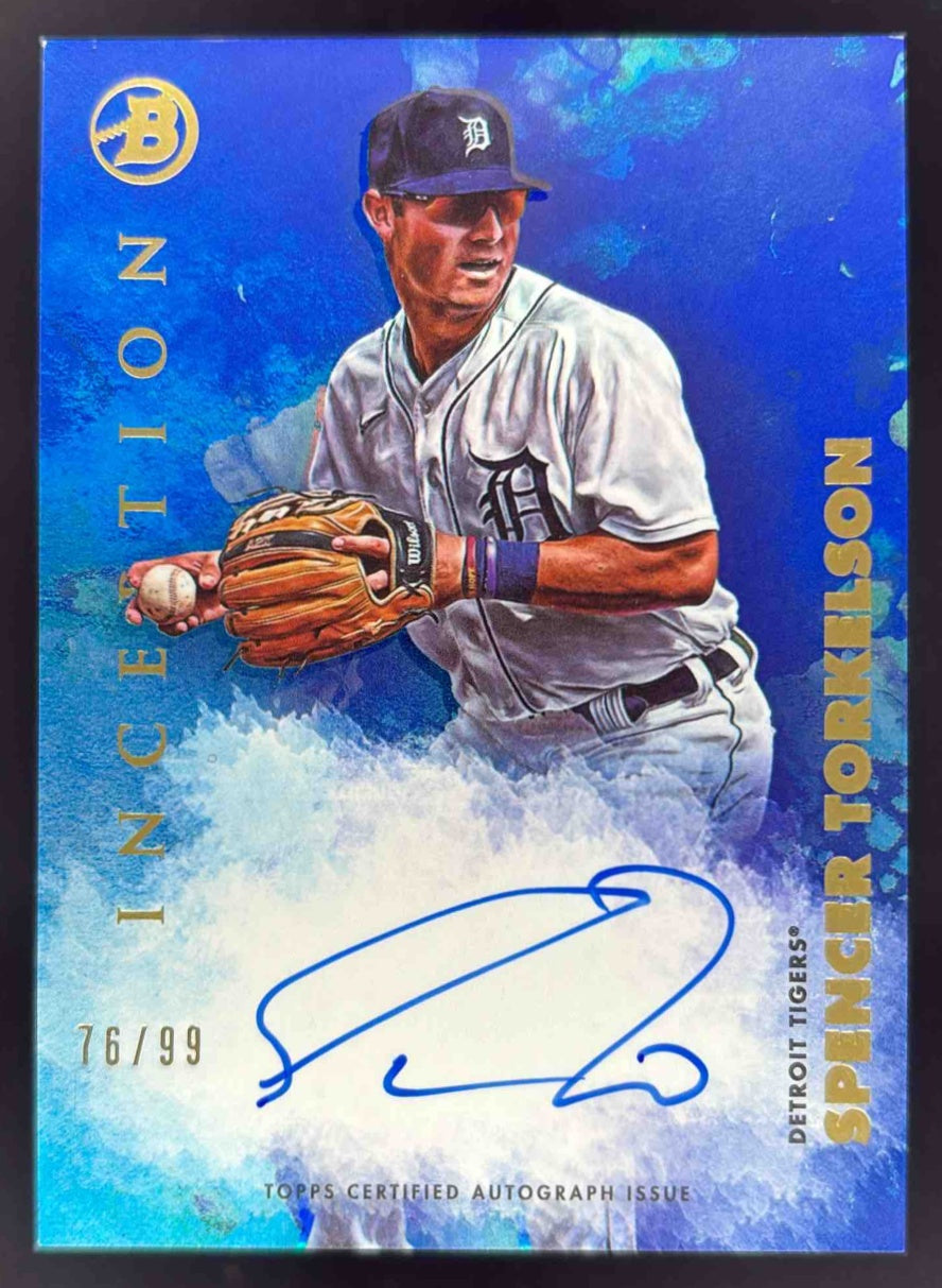 2021 Bowman Inception Autographs Blue Foil #PA-ST Spencer Torkelson RC Auto /99