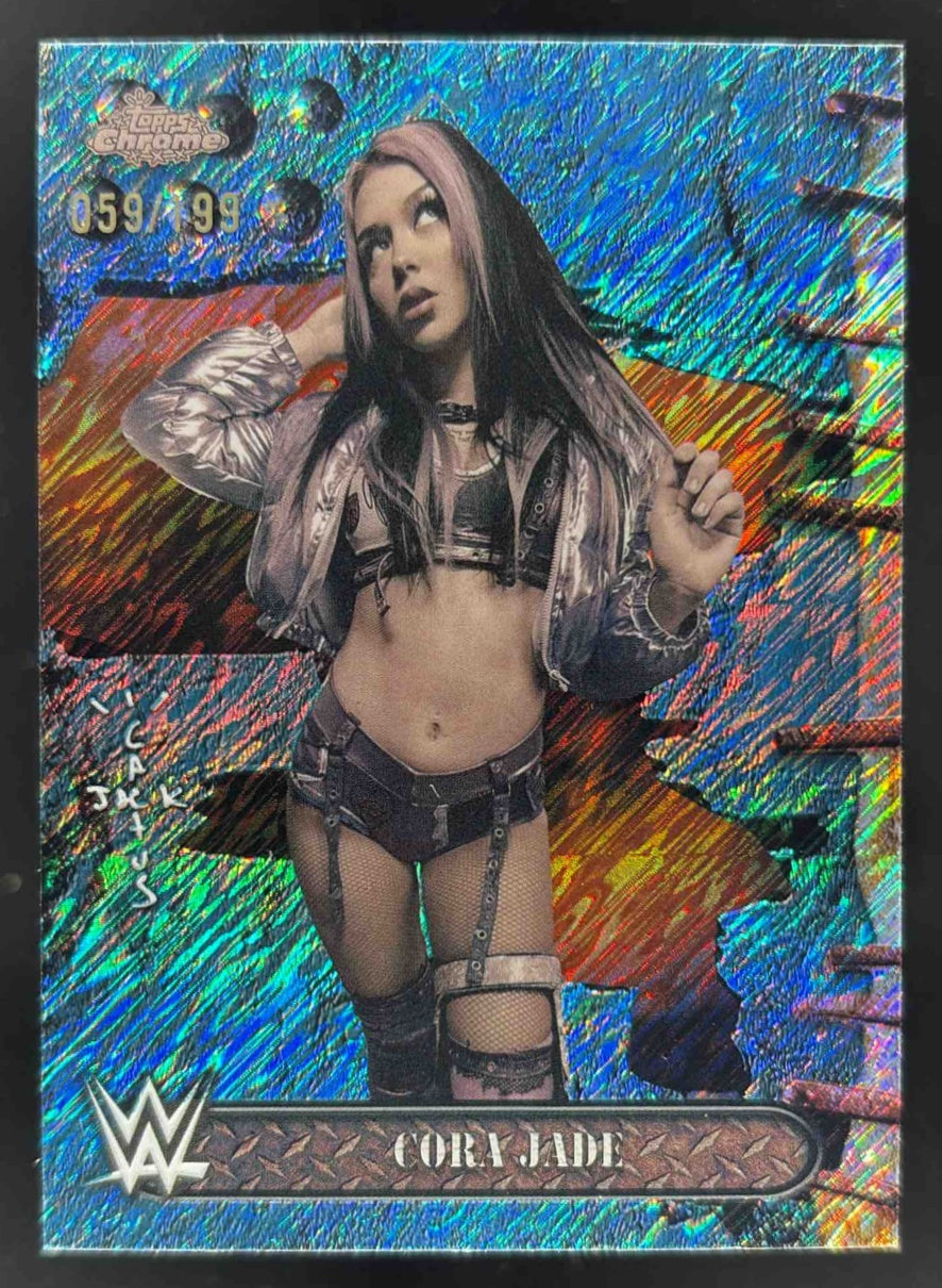 2025 Topps Chrome WWE x Cactus Jack Blue Refractor #73 Cora Jade /150