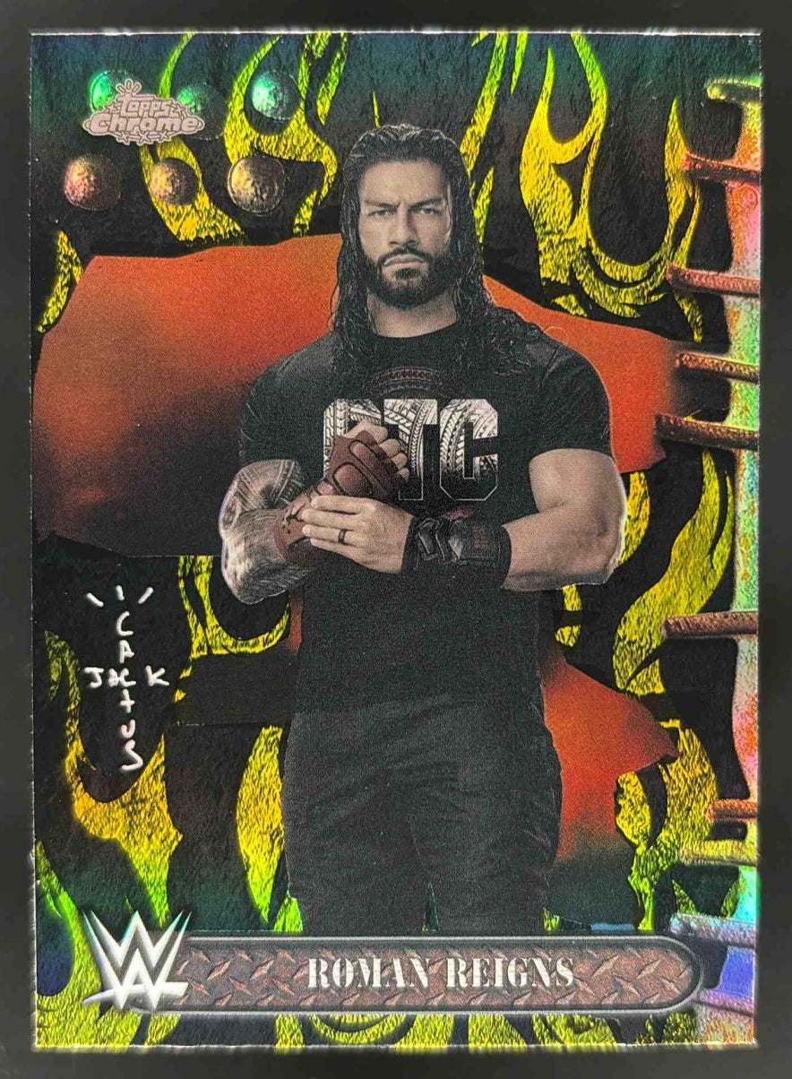 2025 Topps Chrome WWE x Cactus Jack Black and Yellow Refractor #25 Roman Reigns
