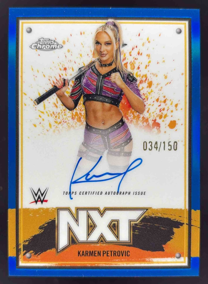 2025 Topps Chrome WWE NXT Chrome Blue #NXT-KPT Karmen Petrovic Auto /150